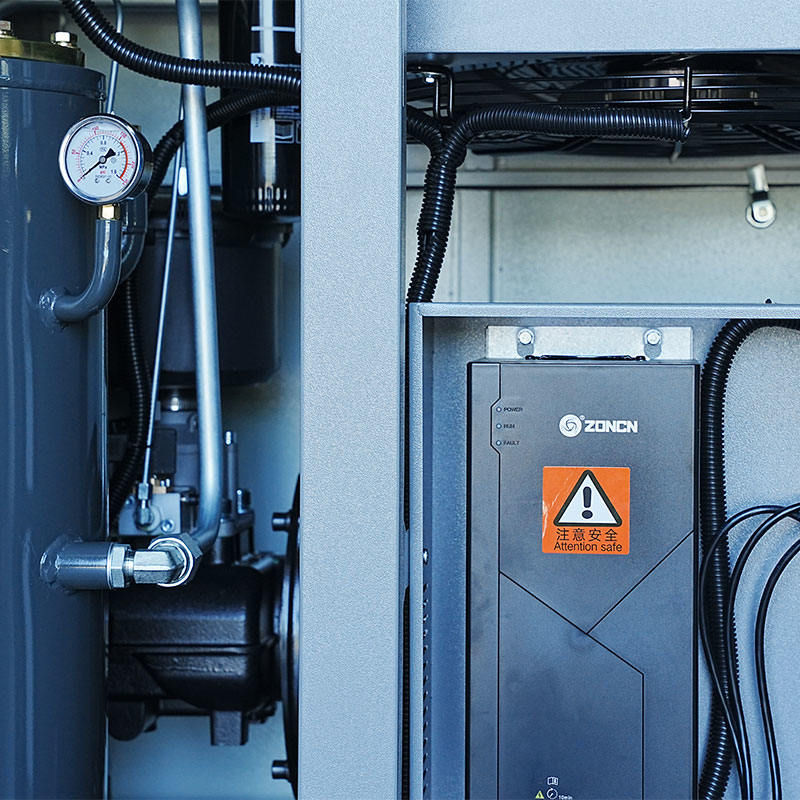 কম্প্রেসার সিস্টেমে শক শোষণ ডিজাইনে প্রায়ই রাবার মাউন্ট, বহুস্তরযুক্ত প্যাড, ড্যাম্পিং প্লেট বা ফ্রেম-মাউন্ট করা ভাইব্রেশন আইসোলেটর অন্তর্ভুক্ত থাকে। একটি 30HP মাইক্রো-অয়েল টুইন স্ক্রু সিঙ্গেল স্টেজ কম্প্রেসারের জন্য একটি সুনির্দিষ্ট ফ্রিকোয়েন্সি রূপান্তর সিস্টেম সহ, শক শোষণও সহজাতভাবে ঘটে কারণ মেশিনটি আকস্মিক যান্ত্রিক পরিবর্তনের মধ্য দিয়ে যায় না। অতিরিক্তভাবে, নিম্নচাপের তেল বিচ্ছেদ ব্যবস্থা - অভ্যন্তরীণ ব্যাফেলস, বড় বিচ্ছেদ ব্যারেল এবং বর্ধিত বিচ্ছেদ কোর দিয়ে ডিজাইন করা - অভ্যন্তরীণ অশান্তি হ্রাস করে সামগ্রিক সিস্টেমের স্থিতিশীলতা বজায় রাখতে সহায়তা করে। এই উপাদানগুলি পরোক্ষভাবে কম্পন পরিচালনায় অবদান রাখে কারণ চাপের স্থায়িত্ব হাউজিংয়ের মধ্যে স্পন্দন শক্তি হ্রাস করে। যদিও কম্প্রেসার এখনও বহিরাগত শক শোষণ সমাধানগুলির সাথে সামঞ্জস্যপূর্ণ হতে পারে, সিস্টেমের অভ্যন্তরীণ ভারসাম্য অতিরিক্ত কম্পন নিয়ন্ত্রণ সরঞ্জামের উপর নির্ভরতা হ্রাসকে সমর্থন করে।