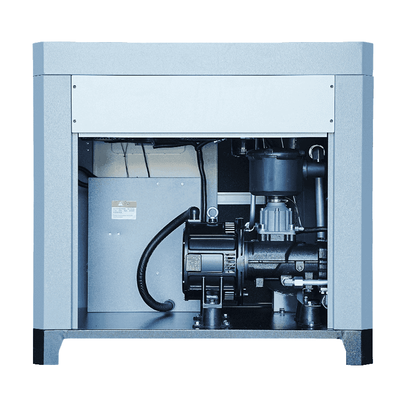 30HP মাইক্রো-অয়েল টুইন স্ক্রু সিঙ্গেল স্টেজ কম্প্রেসারে নিম্ন তাপমাত্রা বৃদ্ধির সুরক্ষা এবং একটি ফ্রিকোয়েন্সি রূপান্তর নিয়ন্ত্রণ ব্যবস্থা সহ একটি স্থায়ী চুম্বক সিঙ্ক্রোনাস মোটর অন্তর্ভুক্ত করা হয়েছে, উভয়ই কম্পনের বৈশিষ্ট্যকে প্রভাবিত করে। মোটর এবং স্ক্রু রটারের মধ্যে সরাসরি এবং দক্ষ মিথস্ক্রিয়া স্টার্টআপ, অপারেশন বা ক্ষয় করার সময় যান্ত্রিক দোলন হ্রাস করার সময় মসৃণ টর্ক ট্রান্সমিশন নিশ্চিত করে। উপরন্তু, ফ্রিকোয়েন্সি রূপান্তর প্রযুক্তি মেশিনটিকে ত্বরান্বিত করতে এবং ধীরে ধীরে হ্রাস করতে দেয়, আকস্মিক টর্ক স্পাইকগুলি হ্রাস করে যা অবাঞ্ছিত কম্পনের কারণ হতে পারে। মাইক্রো-অয়েল লুব্রিকেশন সিস্টেম চলমান অংশগুলির মধ্যে ঘর্ষণ কমিয়ে অভ্যন্তরীণ উপাদানগুলিকে আরও স্থিতিশীল করে। ফলস্বরূপ, যদিও বাহ্যিক কম্পন-শোষণকারী কাঠামো এখনও নির্দিষ্ট পরিবেশে প্রয়োজন হতে পারে, কম্প্রেসারের অভ্যন্তরীণ স্থাপত্য ইতিমধ্যেই সুষম এবং স্থিরভাবে চলার জন্য একটি ভিত্তি প্রদান করে।
